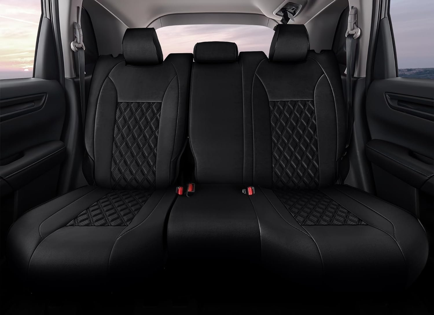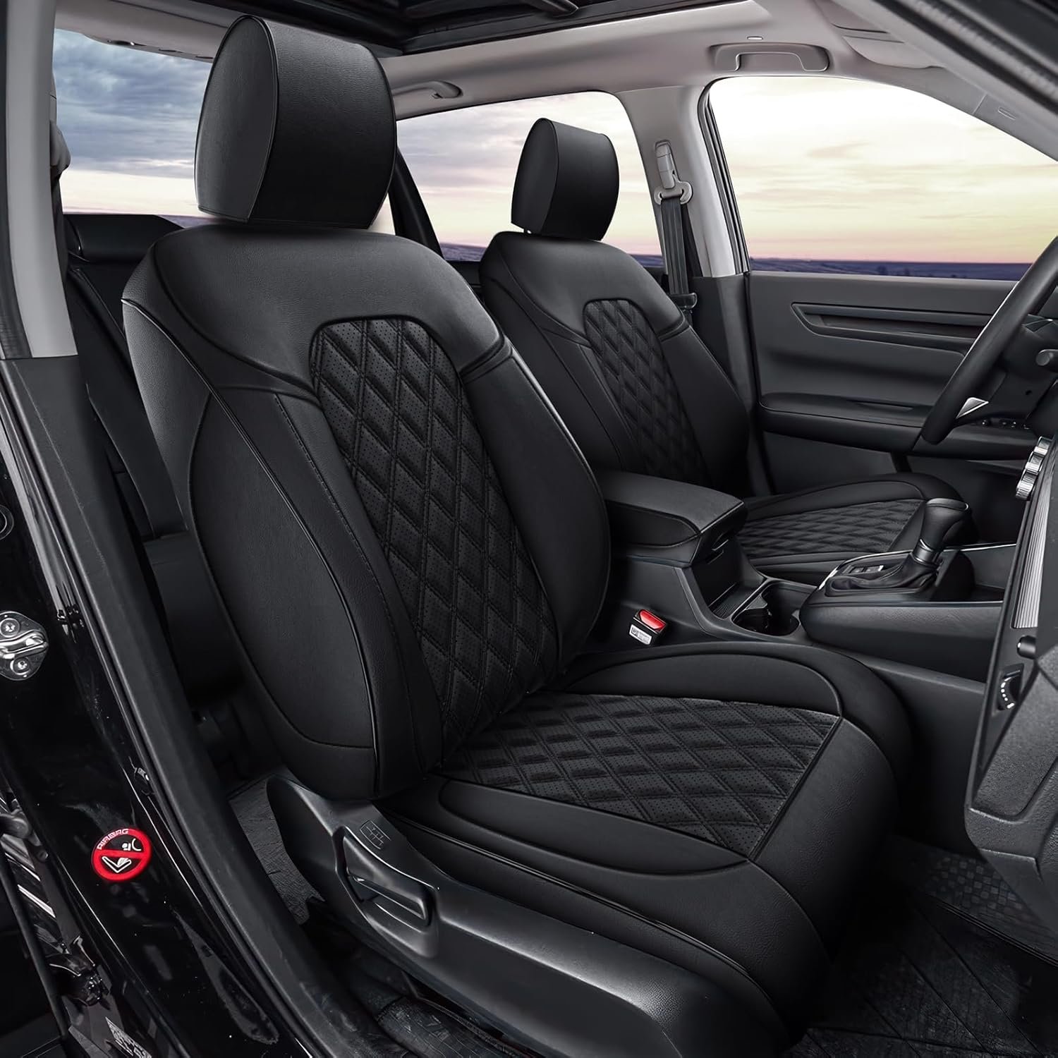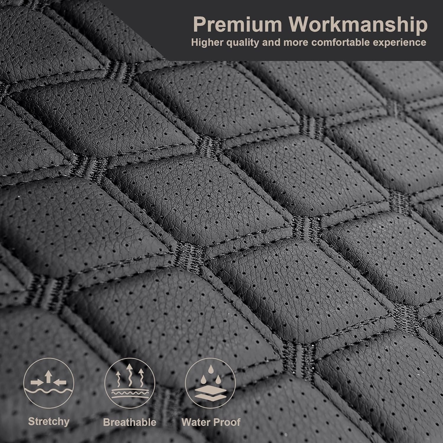 Crafted from high-quality leather, these seat covers offer a sleek and sophisticated appearance. The diamond black color adds a touch of modern elegance to your car’s interior. The material is designed to mimic the feel and appearance of genuine leather, providing a luxurious experience that enhances the overall aesthetic of your vehicle.